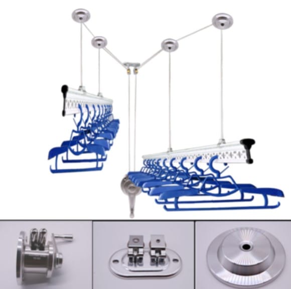 Giàn phơi thông minh có thể nâng hạ, co kéo kích thước tùy ý. Nên có thể được điều chỉnh tùy vào không gian và lượng đồ cần phơi.