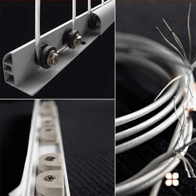 - Các thanh nhôm : Có công dụng để cố định 2 đầu của dây cáp. Được làm từ hợp kim nhôm cao cấp nên các thanh nhôm đều có độ bền cực kì cao và khả năng chịu lực lớn. Ở các thanh nhôm sẽ có sẵn vít và hệ thống bu lông để lắp đặt dây cáp. Đồng thời, còn được phủ thêm một lớp sơn trắng tĩnh điện bên ngoài để tăng tính thẩm mỹ cho sản phẩm.